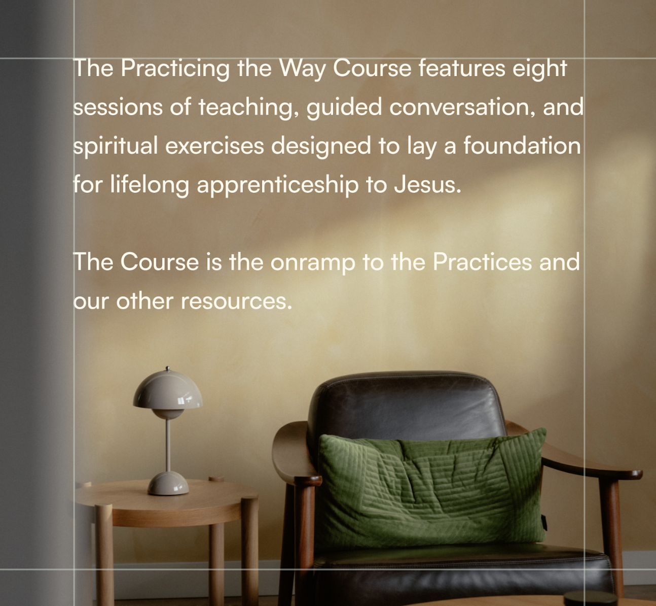 "Practicing the Way" growth groups. PTW is an eight session course on spiritual formation, exploring what it means to follow Jesus and laying the foundation for a life of apprenticeship to Him. Each 1.5 hour session includes video teaching, guided conversations, and weekly practices to help integrate what we learned into everyday life.